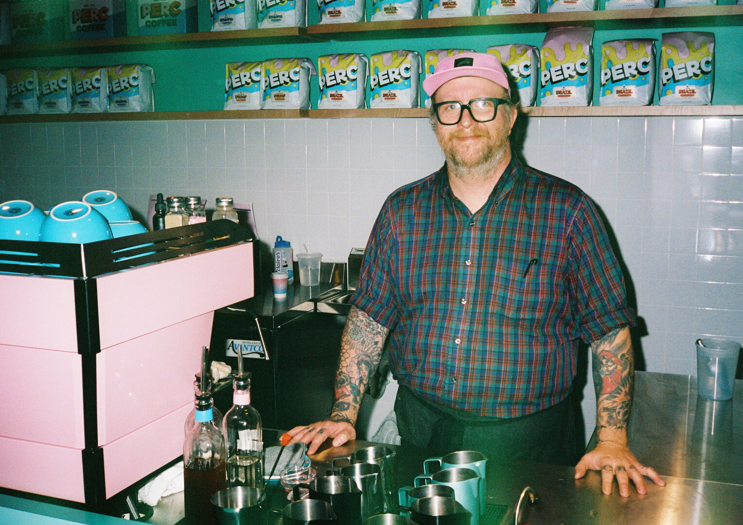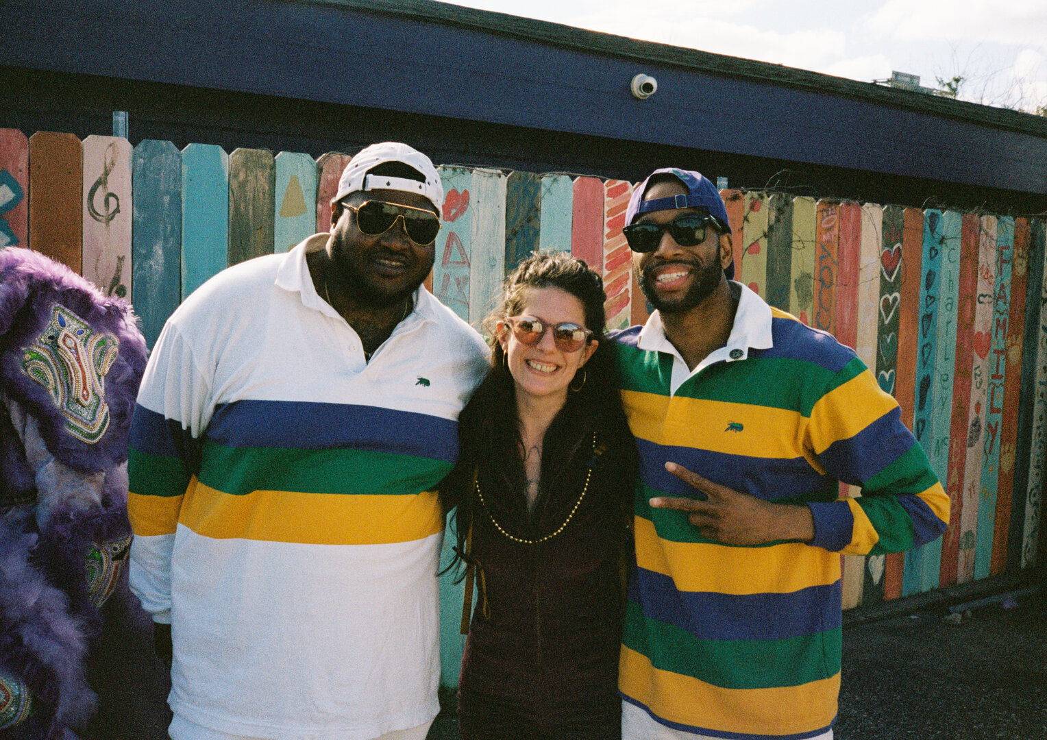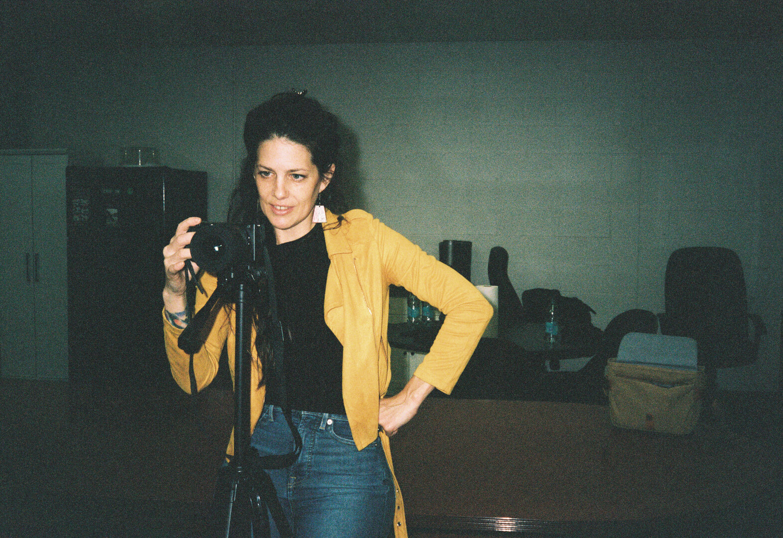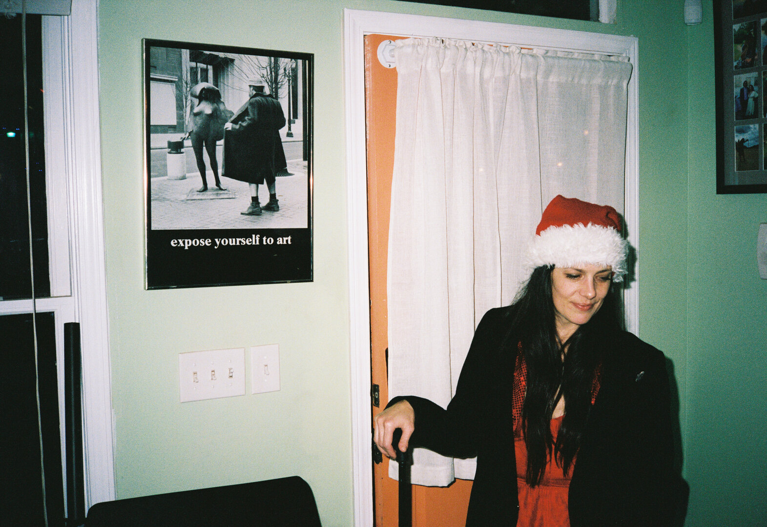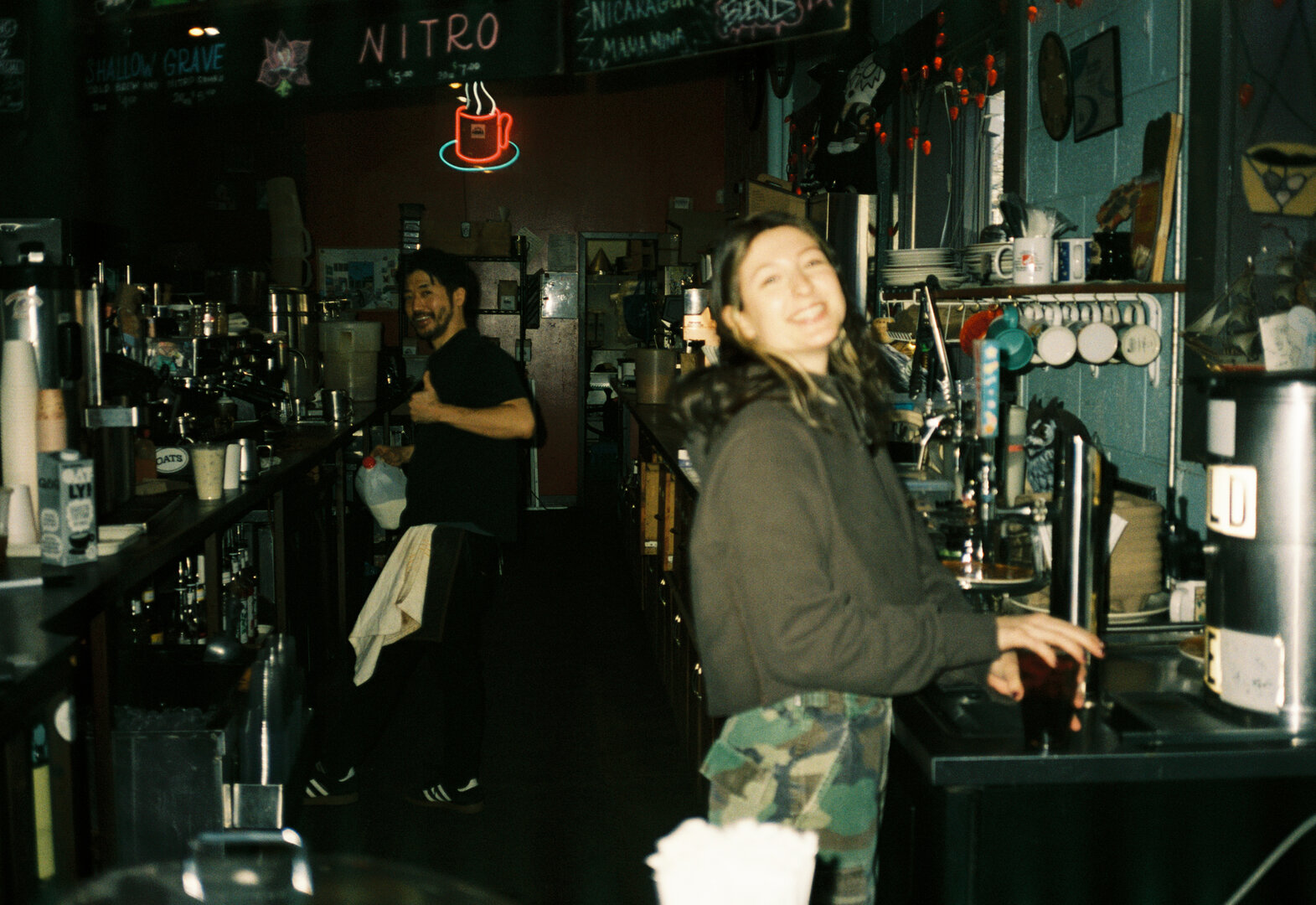 A female DJ wearing headphones performs behind a laptop and DJ controller in a bright indoor venue, with guests socializing in the background.