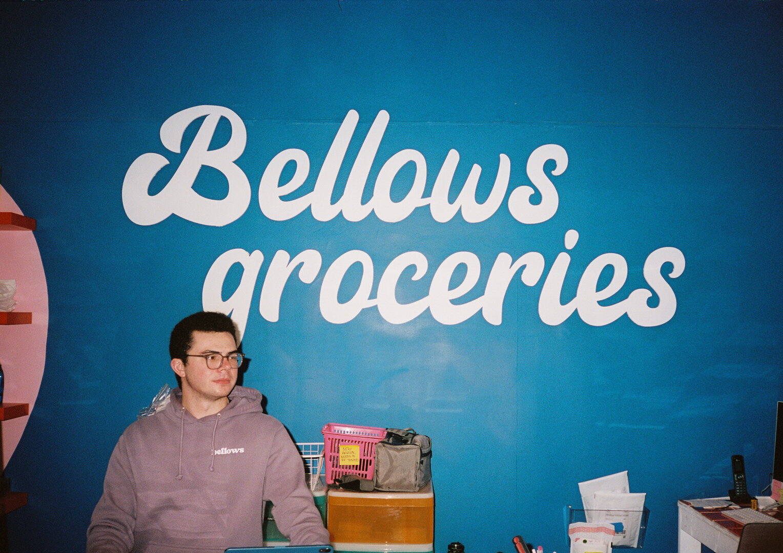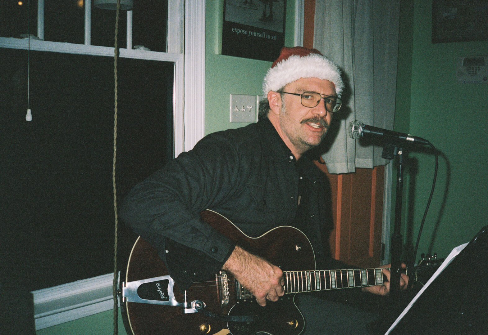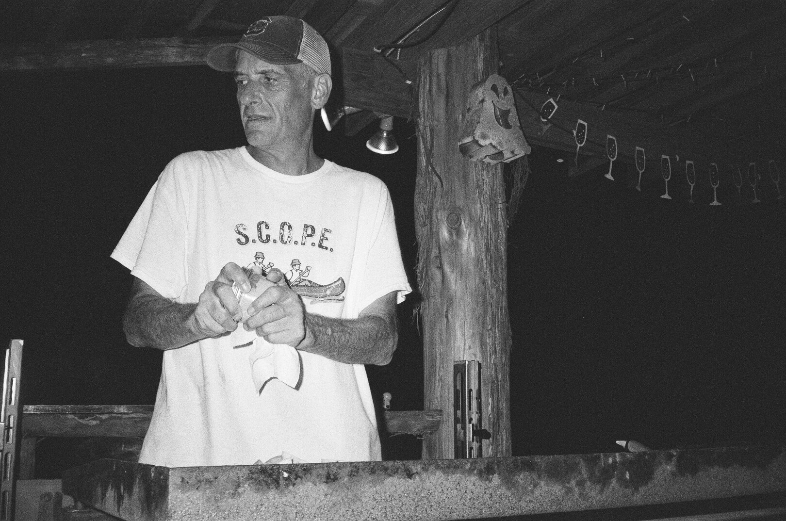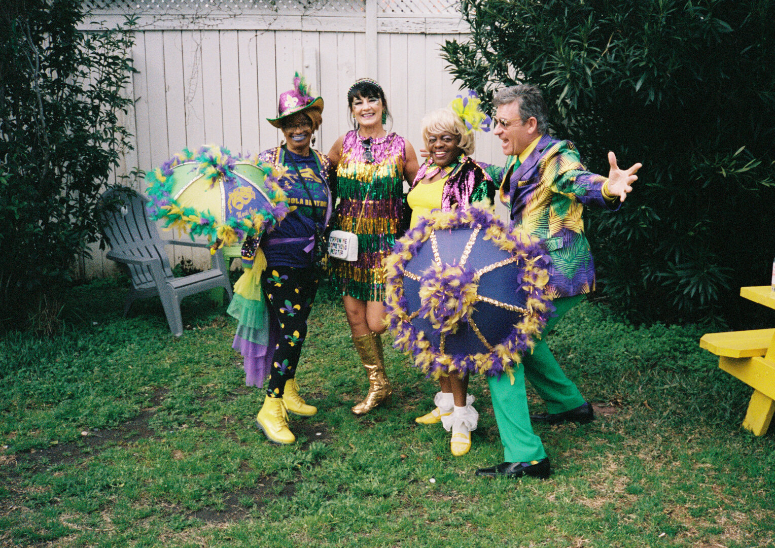 A female DJ wearing headphones performs behind a laptop and DJ controller in a bright indoor venue, with guests socializing in the background.